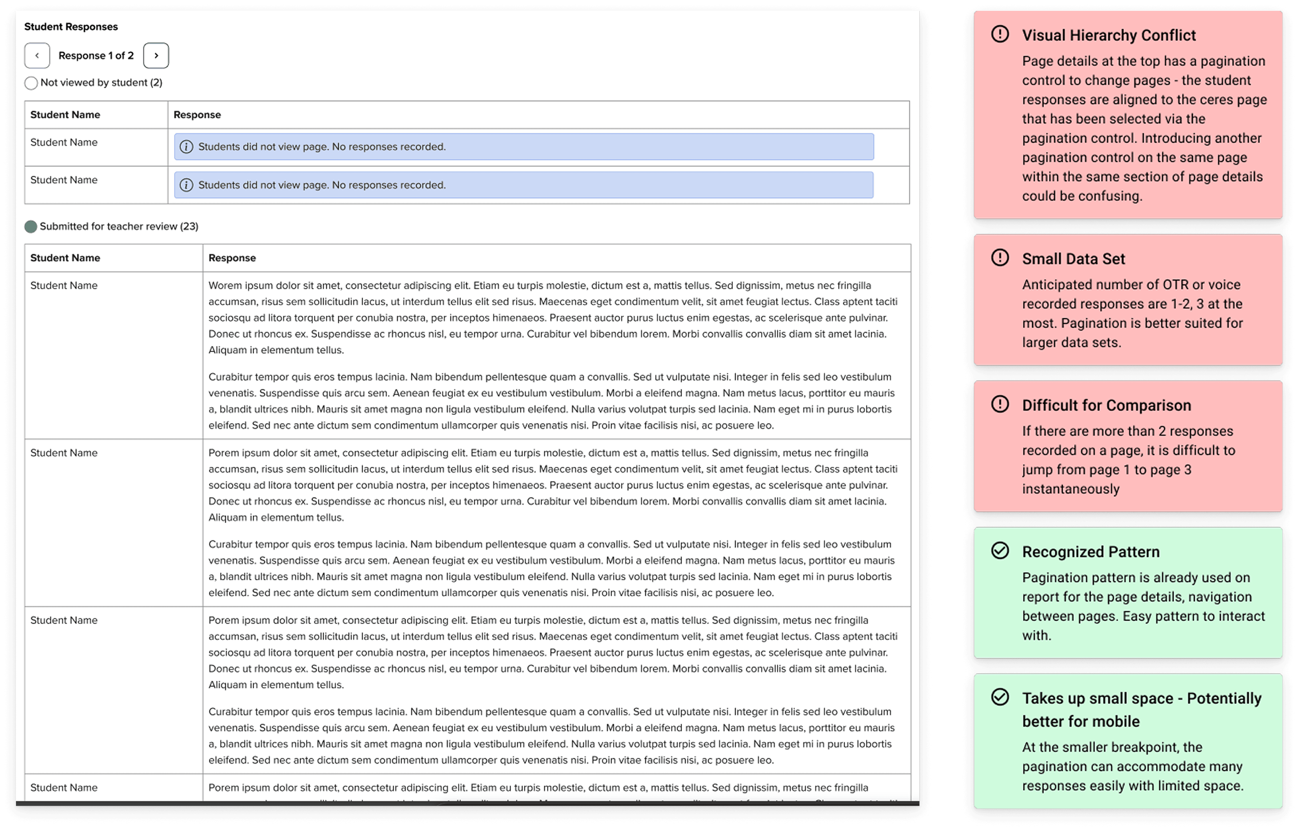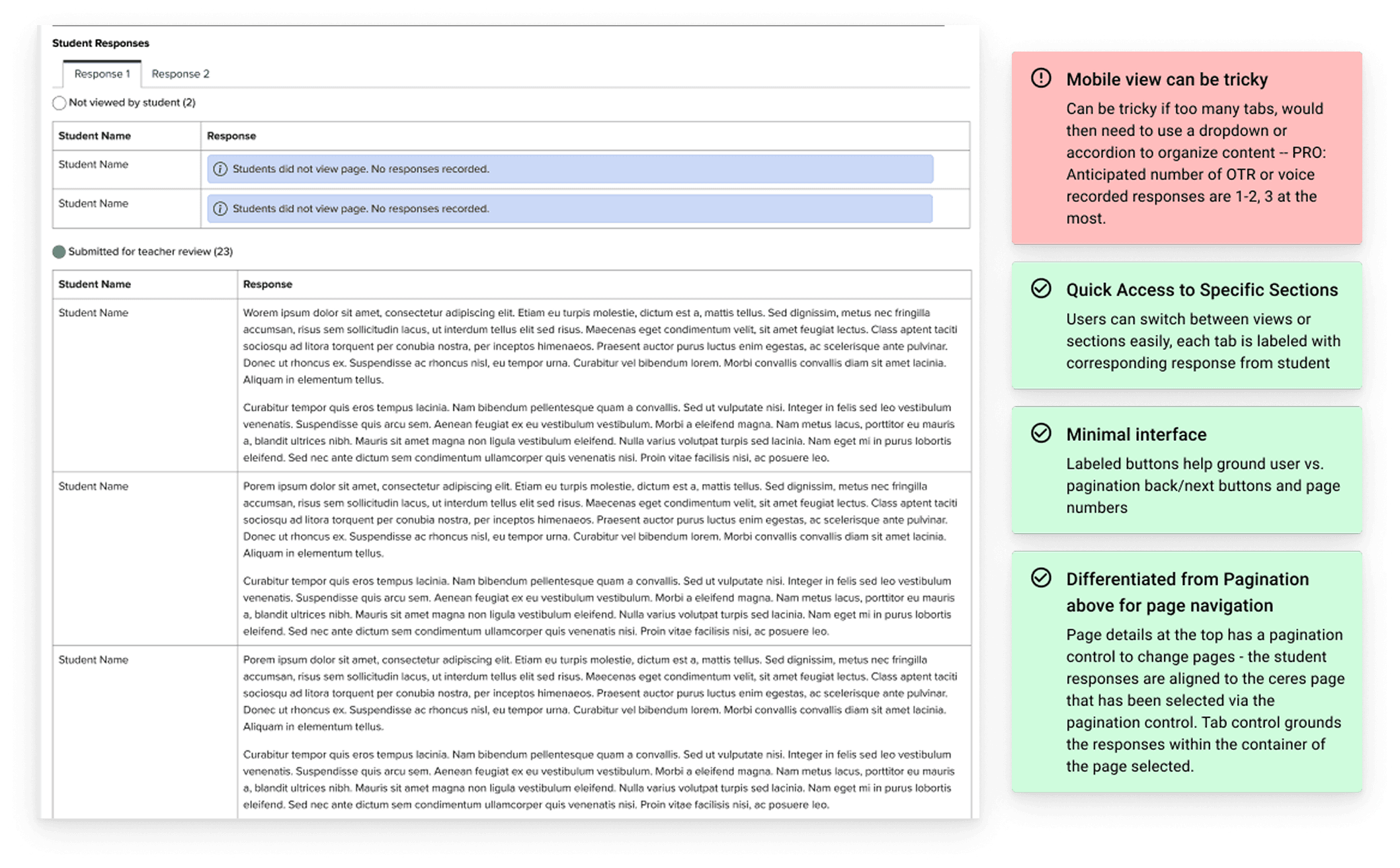 This is also where I started to dive deeper into the use case of the open text response and voice recording responses that teacher would need to review.